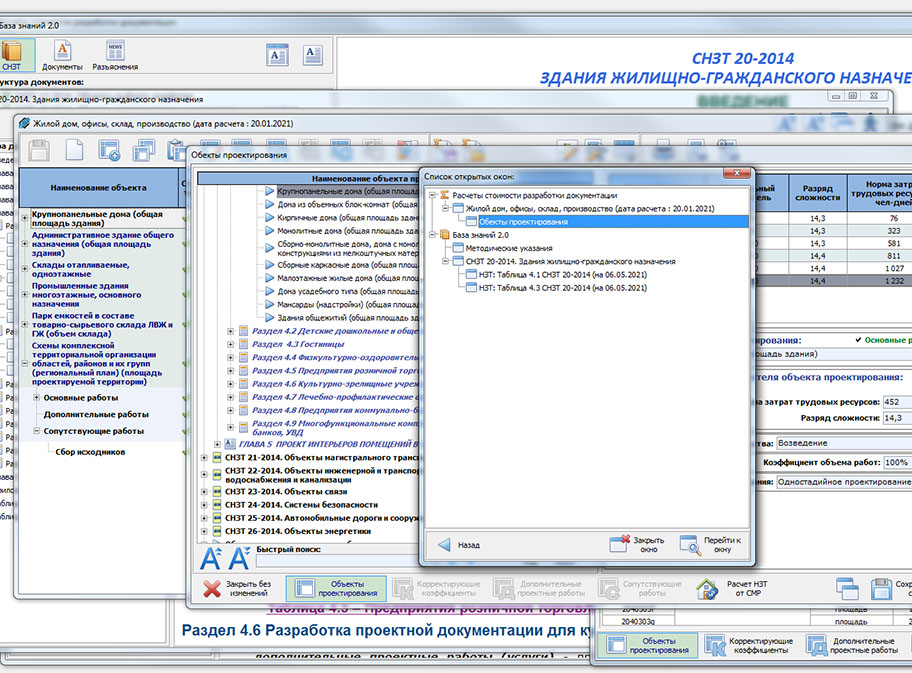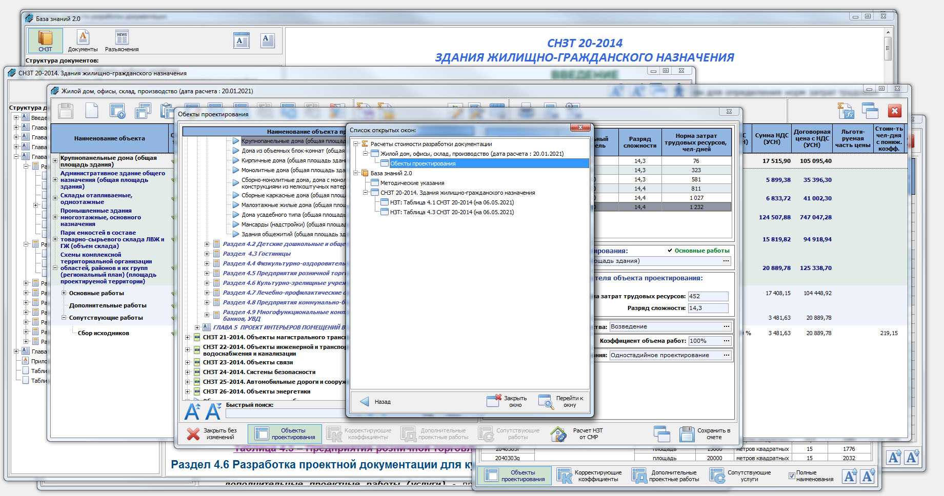 (нормативные документы, справочники, сметы и др.), часть из которых может оказаться скрытой за другими окнами. Для систематизации